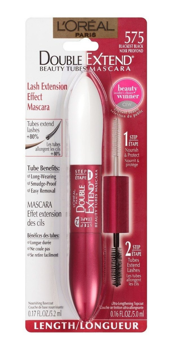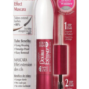 LOreal presents Double Extend Beauty Tubes mascara, a revolutionary lash extension effect mascara that provides up to 80% longer-looking, nourished lashes. Step 1: Nourishing base coat: The perfect base for tube application. Infused with Ceramide R and D-Panthenol to protect, nourish and strengthen lashes. Step 2: Ultra-lengthening tube topcoat: as the mascara sets, it forms tubes that act like lash-lengthening extensions. Lashes look up to 80% longer. The tubes last all day without smudging, smearing or flaking. Step 3: Smudge-free removal: The mascara tubes remove with plenty of warm water, without the need for makeup remover. When washing your face simply smooth the tubes away from lashes with your fingertips or hold a cotton pad soaked in warm water on the lashes for 30 seconds. 2-Step Length Tubing Technology Extension Effect See 80% visibly longer lashes. Apply step 1 to lashes, and immediately follow with step 2 no need to wait for drying time in between. Place each brush at the base of lashes and gently sweep up from root to tip. To safeguard LOreal purity, reserve this product for your personal use. Treat the applicator with the hygienic care you give your eyes. Never apply this product in a moving vehicle. Do not dilute mascara with water, saliva, or any other substance. Cap tightly after use. If change in odor or appearance occurs, discontinue use. Do not use this or any other eye cosmetic if your eye is injured, irritated, or infected. Consult a physician promptly.