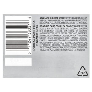 Condicionador Complexo para cuidados com a pele: Água/aqua/eau, álcool cetoestearílico, glicerina, behentrimonium chloride, dimeticona, bis-cetearil amodimeticona, cetyl esters, ácido cítrico, álcool isopropílico, dicetyldimonium chloride, perfume / fragrância, citrato de sódio, fenoxietanol, cera de candelilla/cera de candelilla/cire de candelilla, miristato de isopropila, guar hidroxipropil, coco-betaine, amodimethicone, cetrimonium chloride, tiodipropionato de dilauril, trideceth-10, cloreto de sódio, estearato de PEG-100, estearato-6, trideceth-3, ácido acético, hedta trissódico.