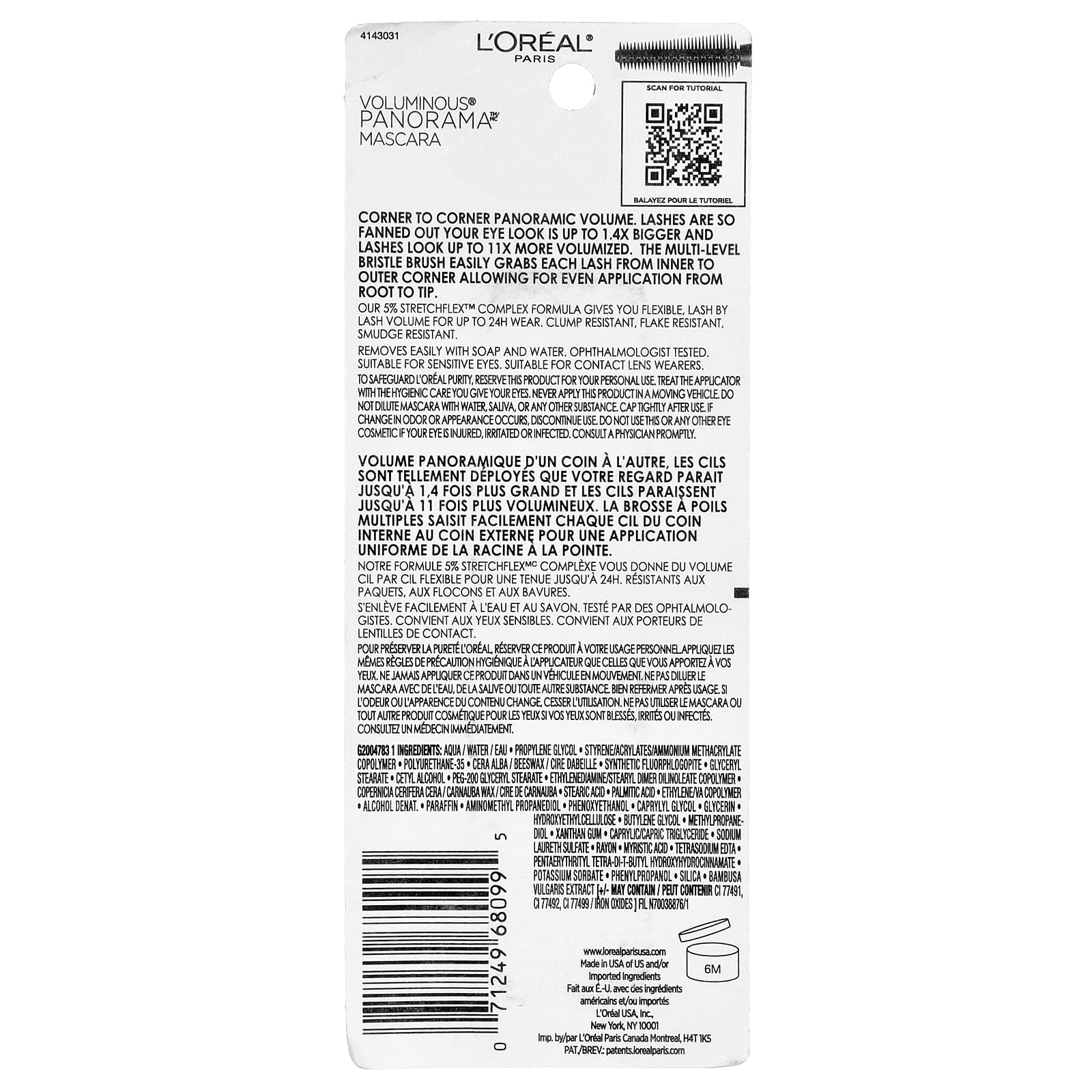 Volume panorâmico de canto a canto. Os cílios ficam tão abertos que seus olhos ficam até 1,4 vezes maiores e os cílios ficam até 11 vezes mais volumosos. O pincel de cerdas de vários níveis segura facilmente cada cílio do canto interno ao externo, permitindo uma aplicação uniforme da raiz às pontas.
