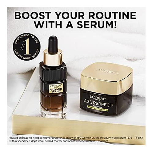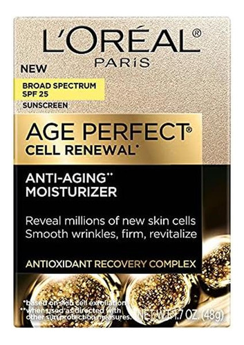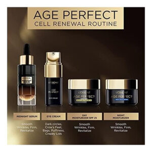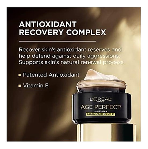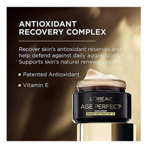 REVELA MILHÕES DE NOVAS CÉLULAS DE SUPERFÍCIE, PELE VISIBILMENTE MAIS JOVEM: Age Perfect Cell Renewal Moisturizer é um creme facial anti-envelhecimento diário com proteção FPS 25 de amplo espectro. Elaborado com um exclusivo Complexo de Recuperação Antioxidante, ajuda a recuperar as reservas antioxidantes da pele dia após dia. Recomendados por dermatologistas, os antioxidantes ajudam a defender a pele contra as agressões externas prejudiciais e ajudam a impulsionar o seu processo natural de renovação. Milhões de novas células são reveladas e a pele fica mais jovem ‘ veja menos rugas e uma pele mais firme e radiante. Formulado sem parabenos ou óleo mineral, é testado contra alergias e dermatologistas, adequado para peles sensíveis. AUMENTE SUA ROTINA COM UM SÉRUM: Combine com nosso inovador NOVO Age Perfect Cell Renewal Midnight Serum para obter ainda mais antioxidantes que amam a pele. Este poderoso soro antienvelhecimento ajuda a revelar uma pele com aparência mais jovem. E é PREFERIDO AO SÉRUM 1 NOITE DE LUXO*. Experimente você mesmo e veja! O QUE É UM COMPLEXO DE RECUPERAÇÃO ANTIOXIDANTE? Nosso exclusivo Complexo de Recuperação Antioxidante ajuda a impulsionar a renovação da pele, combinando um poderoso antioxidante patenteado pela LOreal – derivado da laranja amarga – e vitamina E para ajudar a reforçar a barreira da pele. MENOS RUGAS, PELE MAIS FIRME E RADIANTE: Após 1 uso, a pele fica mais lisa e flexível. Em 1 semana, a pele fica preenchida e radiante. Em 4 semanas, as…