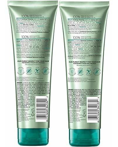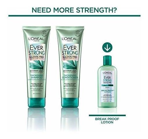 L'Oreal Paris EverStrong Espessar sulfato livre shampoo e condicionador hidrata e fortifica cabelos finos para cabelos mais grossos após a primeira lavagem. O sistema injeta força, reforçando o cabelo para ser 15X mais forte. Fortalecer a folha de alecrim deixa o cabelo fino parecendo cheio e saudável. Nossas fórmulas são especialmente suaves no cabelo tratado de cores. Não há sulfatos severos, sais ou surfactantes que possam tirar, ficar maçante e danificar os cabelos. Experimente uma espuma puramente sensorial exuberante, luxuosa e uma fragrância aromática fresca que condiscência. Sistema de shampoo, condicionador e tratamento versus shampoo não condicionado.