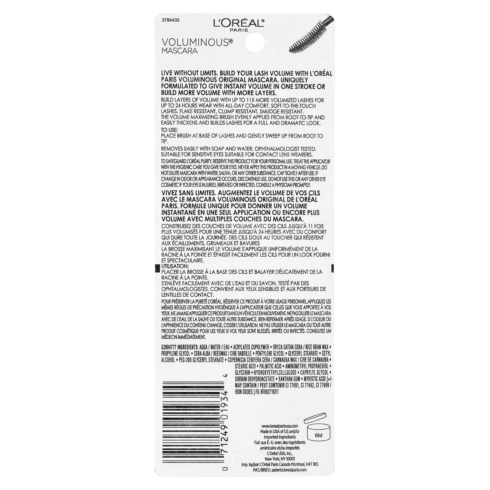 Viva sem limites. Crie um volume para seus cílios com a máscara de cílios volumosa e original da L’oréal Paris. Formulado exclusivamente para dar volume instantâneo com uma única aplicação ou criar mais volume com mais camadas. Crie camadas de volume com cílios até 11 vezes mais volumosos por até 24 horas com conforto durante todo o dia, cílios macios ao toque, resistentes a descamação, a formação de grumos e a manchas. O pincel para maximizar o volume aplica-se uniformemente da raiz às pontas e engrossa e constrói facilmente os cílios para um visual cheio e incrível.