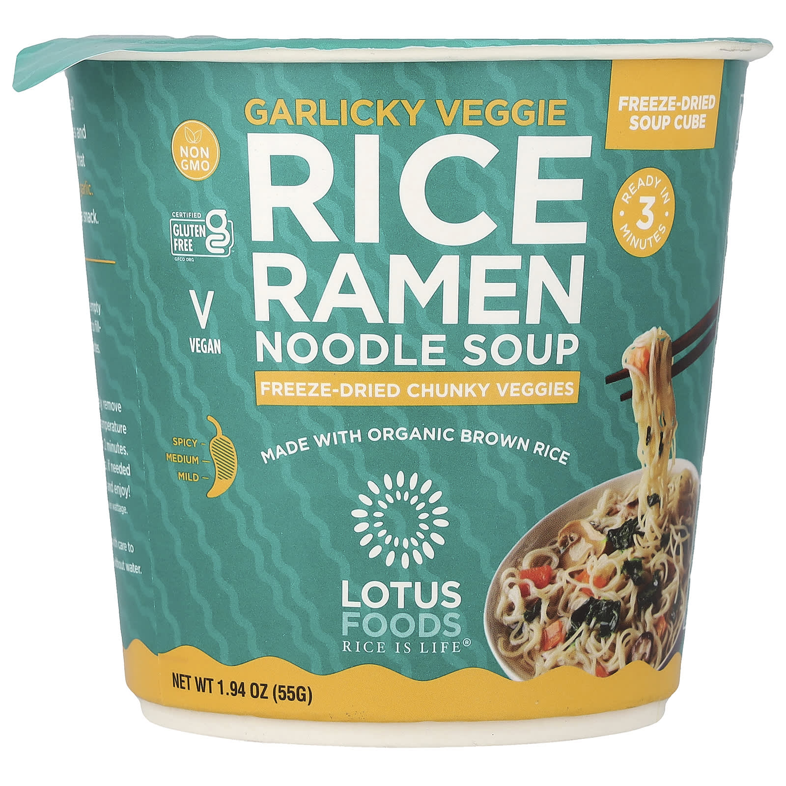 Lotus Foods Ramen de Arroz Sopa de Macarrão Vegetais com Alho 55 g (194 oz) – Lotus Foods Alimentos Alimentos embalados e prontos Massas e Macarrão Ramen Sopas e Caldos Sopas de Caneca.