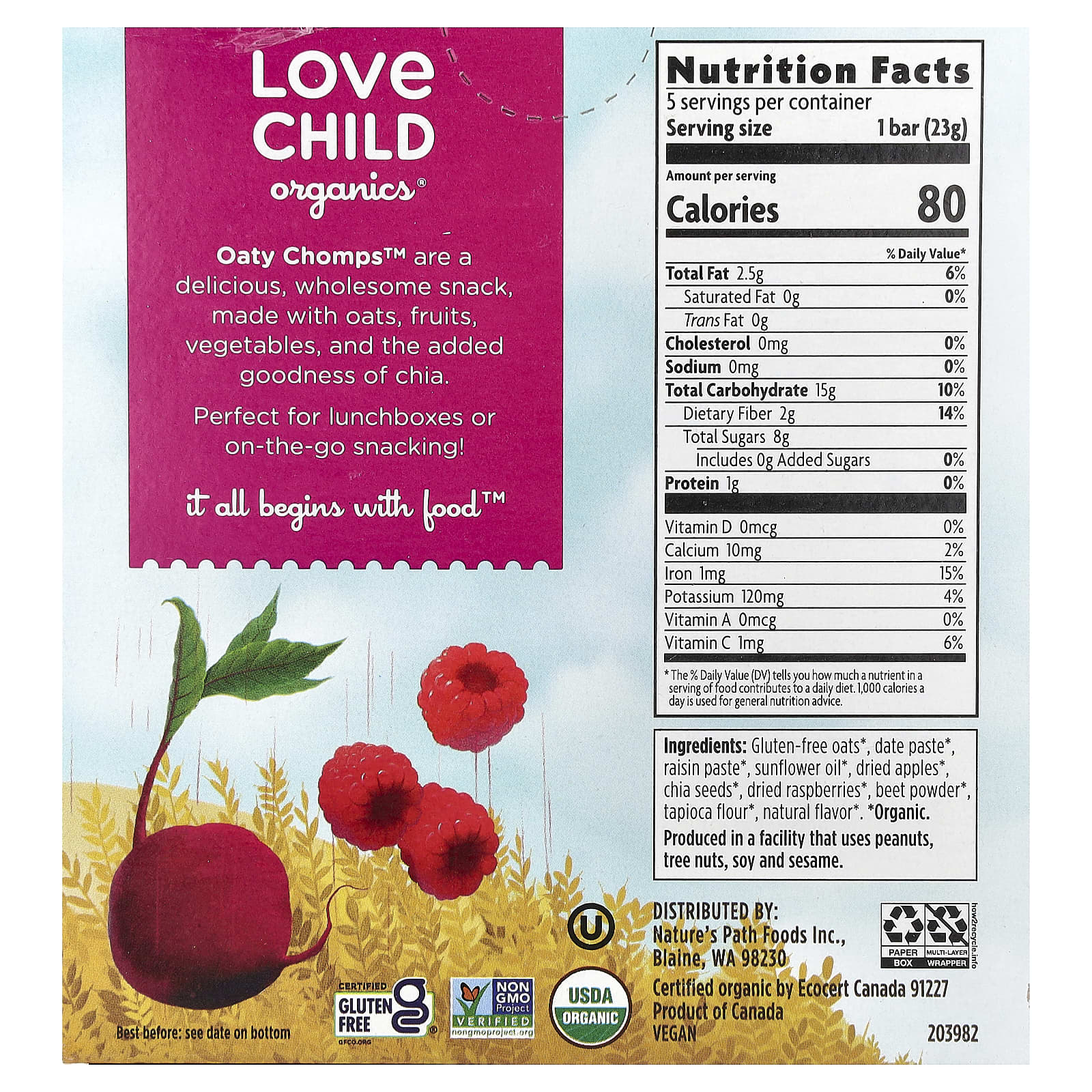 Love Child Organics Natures Path Barras Orgânicas Oaty Chomps™ Acima de 12 Meses Framboesa + Beterraba 5 Barras Embaladas Individualmente 23 g (08 oz) Cada – Love Child Organics Bebês e Crianças Alimentação Lanches para Bebês e Crianças.
