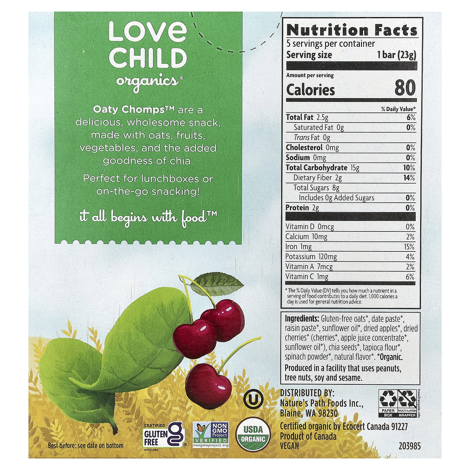 Love Child Organics Natures Path Barras Orgânicas Oaty Chomps™ Mais de 12 Meses Cereja + Espinafre 5 Barras Embaladas Individualmente 23 g (08 oz) Cada – Love Child Organics Bebês e Crianças Alimentação Lanches para Bebês e Crianças.