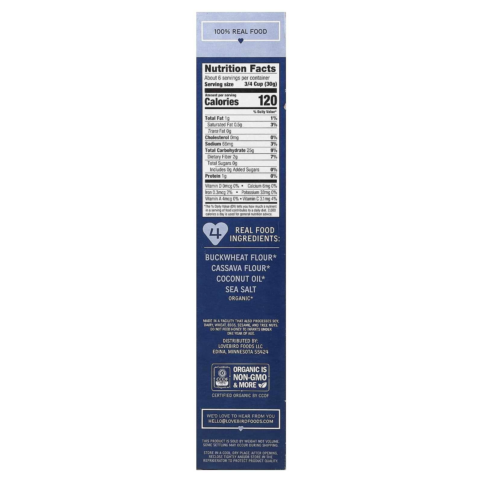 Meus cereais são feitos com ingredientes integrais, ALL listados diretamente na parte da frente da caixa.