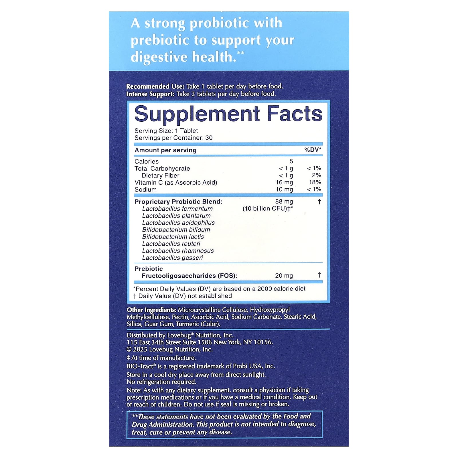 LoveBug Probiotics Heres The Skinny® Probiotic 30 Comprimidos – LoveBug Probiotics Suplementos Saúde Intestinal Probióticos.