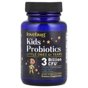 LoveBug Probiotics Pérolas de Probióticos para Crianças A partir de 4 Anos 3 Bilhões de UFCs 60 Pérolas Fáceis de Engolir – LoveBug Probiotics Suplementos Saúde Intestinal Probióticos Bebês e Crianças Saúde Infantil Probióticos Infantis.
