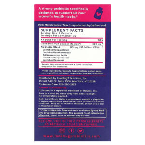 LoveBug Probiotics Probiótico de Suporte ao PH Vaginal + Levedura 50 Bilhões de UFCs 30 Cápsulas – LoveBug Probiotics Suplementos Saúde da Mulher Tratamentos para Cândida e Fungos.