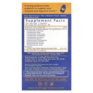 LoveBug Probiotics Probiótico Diário de Potência Avançada 50 Bilhões de UFCs 30 Cápsulas – LoveBug Probiotics Suplementos Saúde Intestinal Probióticos.