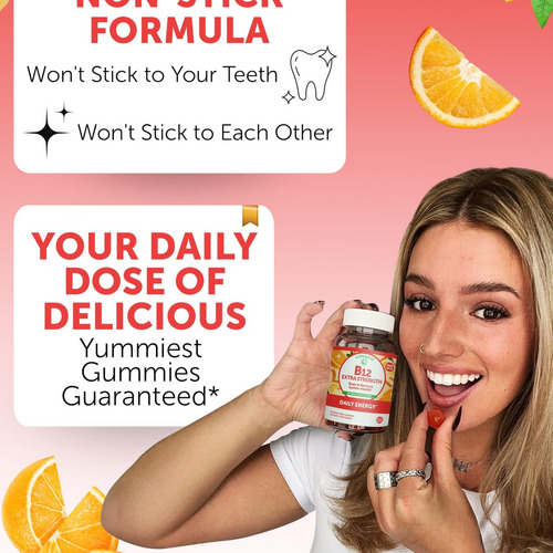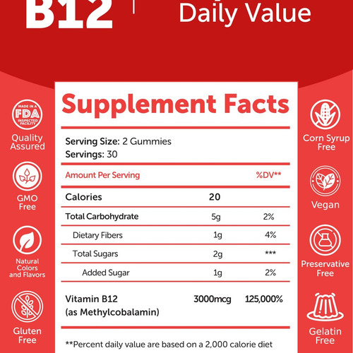 Essas gomas de vitamina B12 fornecem uma dose potente de 3000 mcg para aumentar naturalmente seus níveis de energia ao longo do dia.