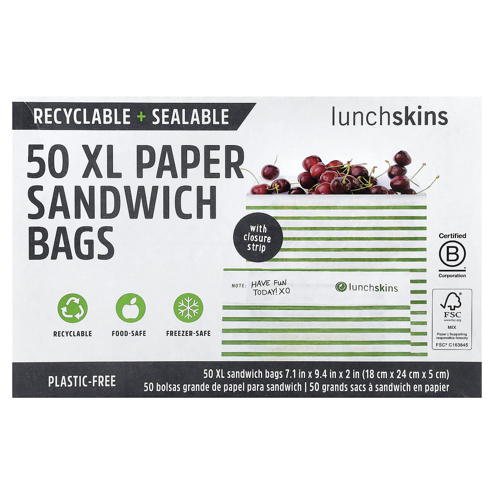 Lunchskins Sacos de sanduíche de Papel XL com Faixa de Fechamento 50 Unidades – Lunchskins Casa Utensílios de Cozinha Armazenamento e recipientes para alimentos.