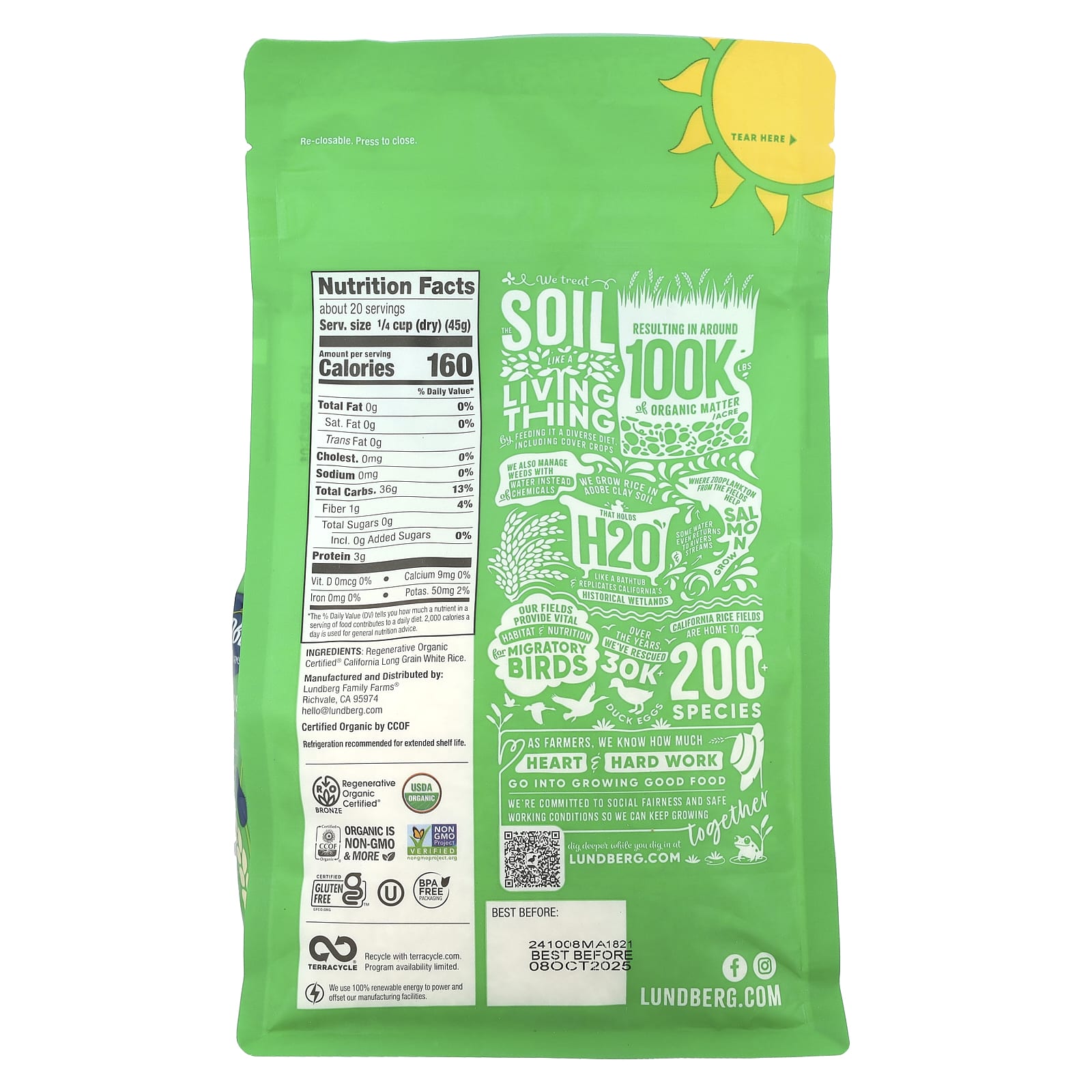 Desde 1937, nossa família tem cultivado arroz saudável e saboroso enquanto cuida do solo, do ar, da água e da vida selvagem com o mesmo cuidado que nossas safras. Algumas pessoas dizem que não somos convencionais. Mas fazer as coisas do nosso jeito – de forma sustentável em cada etapa – nos permite fazer alimentos melhores para sua mesa, ao mesmo tempo que deixa um mundo melhor para a próxima geração. Então, ao escolher a Lundberg, você pode se sentir confiante de que está melhorando o mundo a cada mordida.