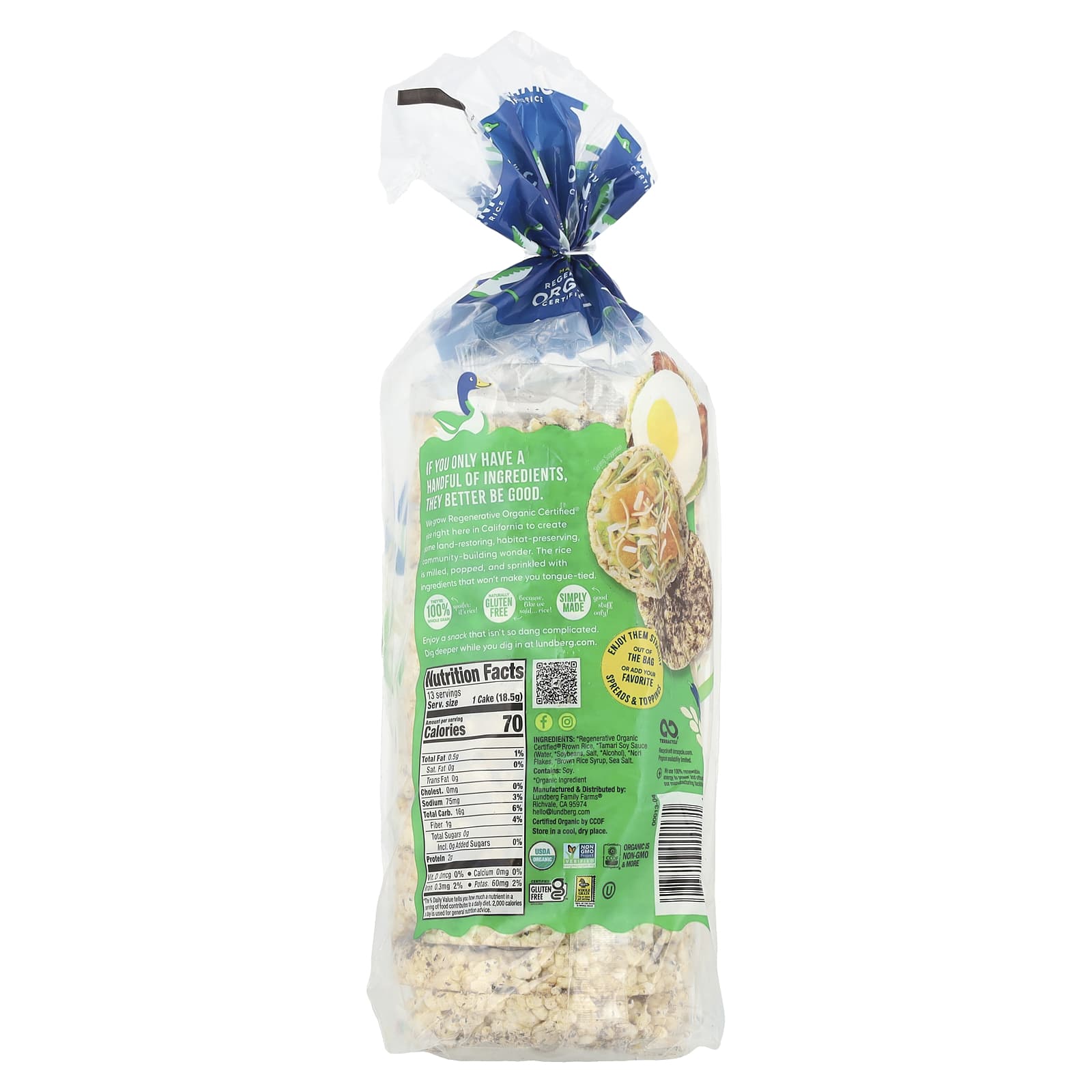 Lundberg Bolos de Arroz Integral Orgânico Tamari com Algas Marinhas 241 g (85 oz) – Lundberg Alimentos Petiscos e lanches Bolachas de arroz.