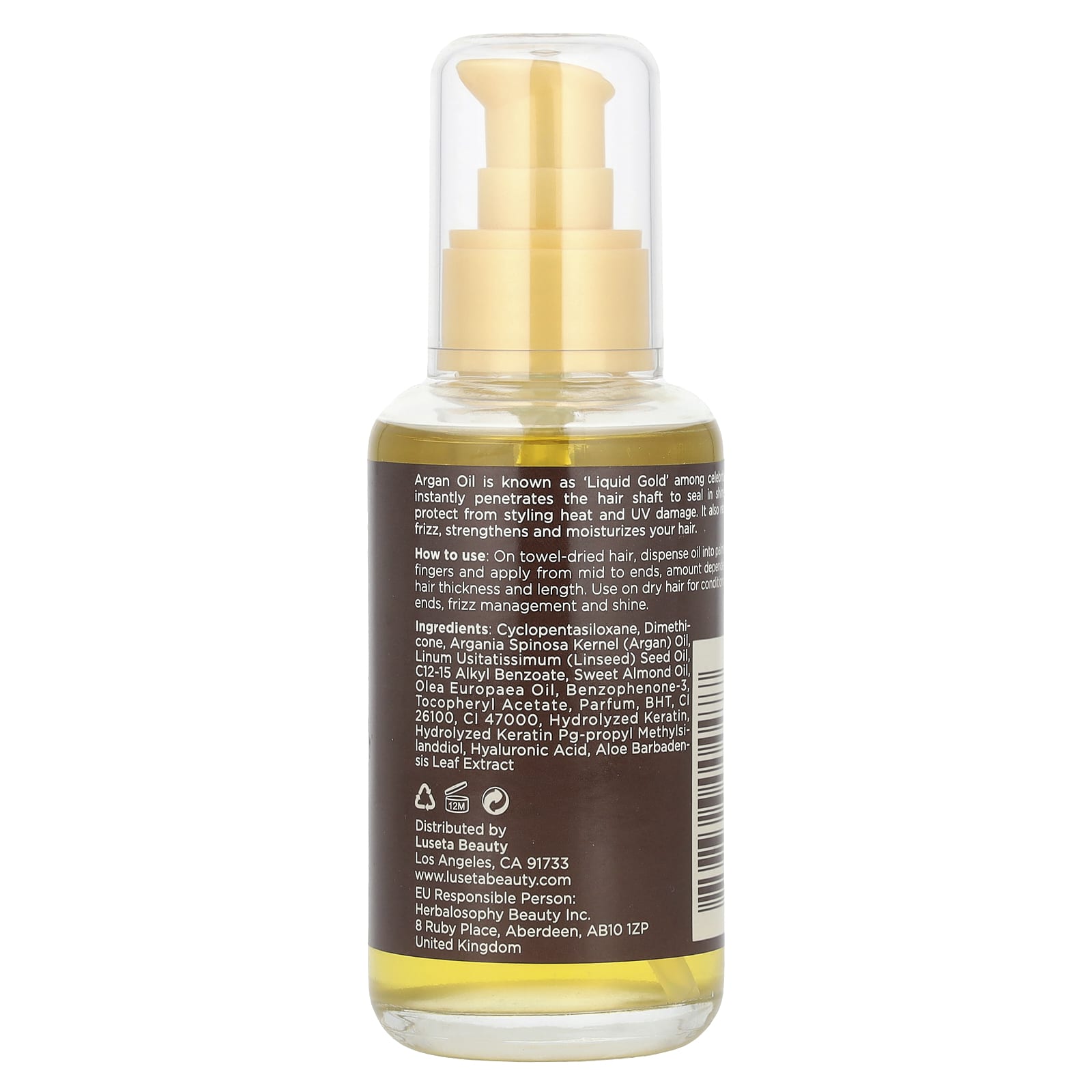 Luseta Beauty Óleo de Argão Sérum para Reparação Capilar 100 ml (338 fl oz) – Luseta Beauty Banho e Cuidados Pessoais Cabelos Tratamentos capilares Óleos e séruns Beleza Beleza por Ingrediente Cuidado para a pele com queratina.