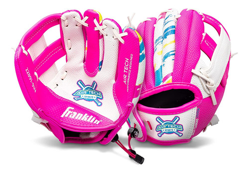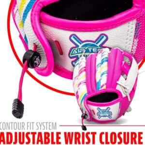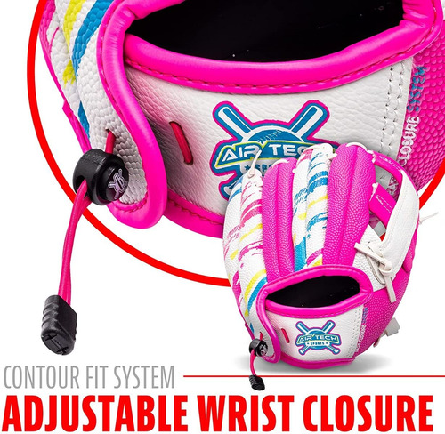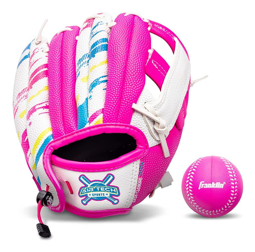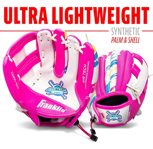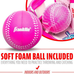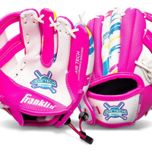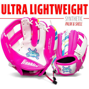 Franklin Sports Air Tech Baseball Glove with Ball – Tee Ball – Soft Air Tech Foam – White/Pink, 9.0 – Right Hand Thrower – LIGHTWEIGHT: Constructed with lightweight PVC for maximum comfort and ease for young players – SOFT AND COMFORTABLE: Made with super soft materials to ensure easy fielding and no break-in time! – FOAM BALL INCLUDED: This glove comes with an MLB branded soft foam tee ball. You will have everything you need to practice throwing and catching whether you are indoors or out! – GREAT FOR TEE BALL: This MLB USA themed glove is perfect for any young tee ball player to practice their catching and throwing skills! – INCLUDES: Foam ball included