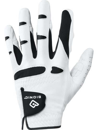 Bionic StableGrip with Natural Fit Golf Glove – White (3X-Large, Left) – DURABILITY This premium golf glove, made of genuine leather, boasts an additional pad on the palm for extra support and lifespan. This pad offers twice the amount of strength in one of the most common places where other golf gloves break down. – DONT STRANGLE THAT CLUBPrevent fatigue and increase grip with our patented anatomical pad relief system evening out the surface of your hand, displacing your grip pressure evenly on the club. Get a lighter grip and stay in full control the whole round. – SECOND SKIN Say goodbye to baggy fingers and constantly re-adjusting your wrist strap. This gloves pre-rotated finger design follows the natural curvature of your hand allowing it to fit like a second skin. Refer to sizing guide for perfect fit! – PERSPIRATION MANAGEMENT Lycra between the finger gussets, top of knuckles and running up the pointer finger offer maximum breathability and flexibility during hot, humid rounds. Terrycloth interior on high risk zones manage moisture without losing grip. – WASH ME! No matter how hot, rainy, good or bad your round was you can wash it away and start fresh. Machine wash on the delicate cycle with mild soap and no bleach products. Cool air dry flat.