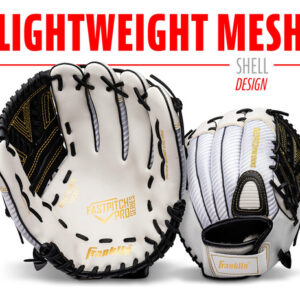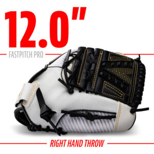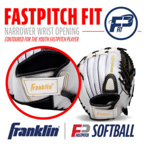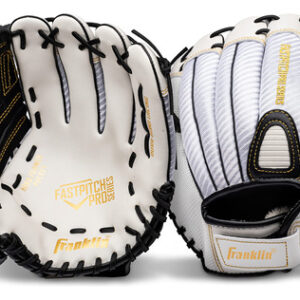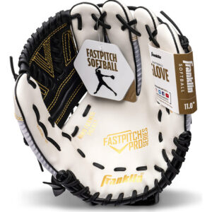 Luva de softball Franklin Sports Fastpitch – Fastpitch Pro – Luva de softball para adultos e jovens – Campo interno e externo – Luva destra – branca/dourada – Destra de 12" –