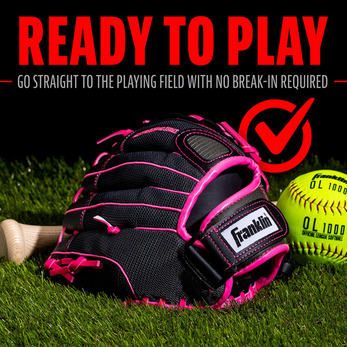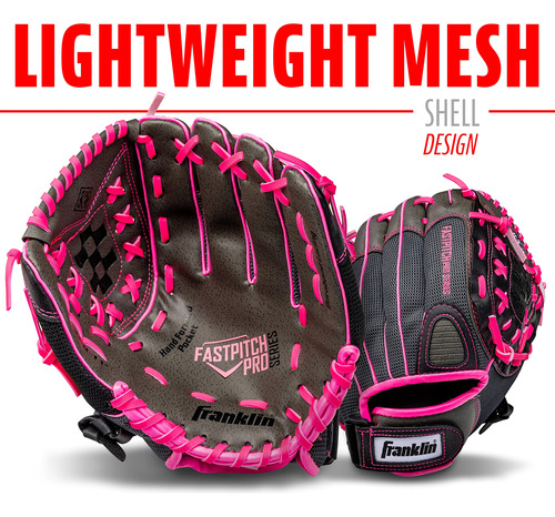 Franklin Sports Girls Softball Glove – Womens Windmill Fastpitch + Slowpitch Softball Glove – Pink Softball Mitt – Right Hand Throw Adult + Youth – 11 – LIGHTWEIGHT MESH DESIGN: Constructed from lightweight technical mesh, this glove gives maximum comfort and helps facilitate quick hands out in the field – ADJUSTABLE WRIST: Designed with an adjustable wrist closure to ensure a comfortable customized fit for all players – SOFT POCKET: The soft pocket material is designed for a quick, easy break in process and provides a dynamic, responsive feel when catching the ball – GREAT FOR YOUNG PLAYERS: Adjustable sizing and comfortable fit make this glove perfect for softball players of all ages – NOTE: Left Hand Thrower glove = worn on right hand to throw with left; Right Hand Throw = glove worn on left hand to throw with right