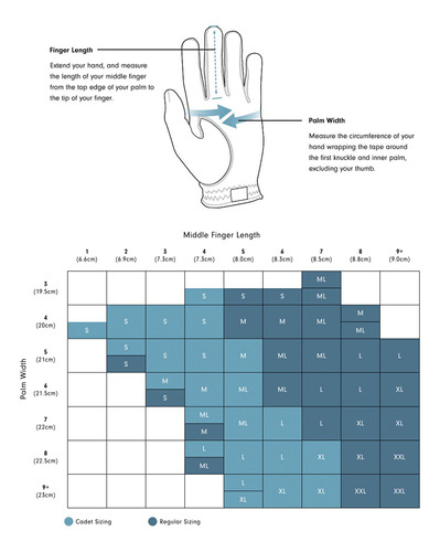 Tamanho das luvas de golfe