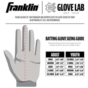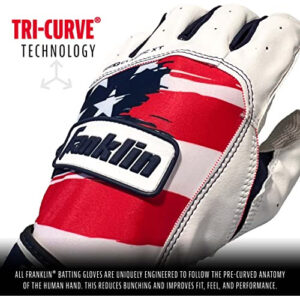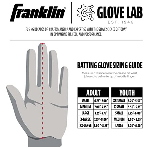 Seja no treino de rebatidas ou nos playoffs, seu jogador de beisebol precisa de um conjunto sólido de luvas que possam lidar com tudo o que o jogo oferece sem volume. A Franklins MLB Classic XT é uma luva de rebatidas flexível e multifuncional com ajuste, toque e aparência atléticos. É a luva de rebatidas ideal para adultos e jovens, oferecendo proteção e uma aderência de última geração. Com vários tamanhos disponíveis, você pode encontrar o ajuste ideal para o seu MVP. Quando se trata de rebatidas, as luvas são cruciais para evitar que as mãos suadas percam o controle do bastão. Projetamos o Classic XT com um material de microfibra gravado digitalmente para uma aderência superior que permite que você sinta cada giro e conexão com a bola. A durabilidade do couro genuíno se conecta ao tecido de microfibra para uma construção híbrida que oferece resistência e sensibilidade específicas exatamente onde você precisa para obter o máximo desempenho. Além disso, nossa tecnologia de três curvas oferece um ajuste perfeito que se molda à sua mão. Cada par de luvas de rebatidas Franklin para adultos e jovens se encaixa perfeitamente na pele, para que as mãos ainda possam se flexionar e se sentir tão perfeitamente como se estivessem nuas. Mais importante ainda, você obtém flexibilidade de alto nível que mantém firme sua aderência ao bastão. Várias opções de cores permitem que você afirme sua personalidade, e um toque de estampa camuflada na lateral de cada luva adiciona um pouco de elegância. Nossa grande variedade de tamanhos permite que você encontre o ajuste perfeito, tornando a Série Classic XT a escolha ideal para jogadores de bola jovens e em constante crescimento. Com as luvas de rebatidas Franklin, os adolescentes estão prontos para o momento em que estão no prato. Cada conjunto de luvas de rebatidas Franklin Sports Classic XT vem com um par costurado de qualidade no tamanho e na cor de sua escolha.