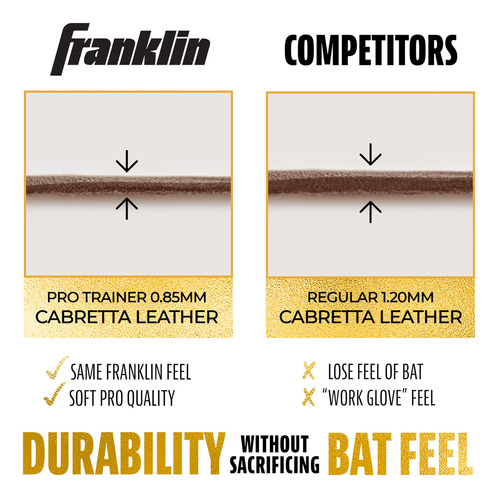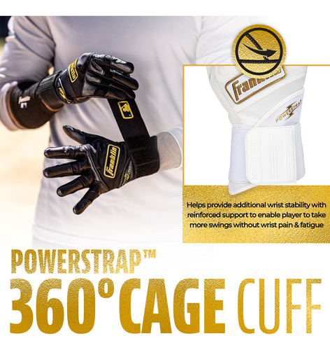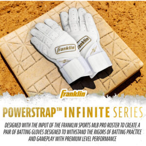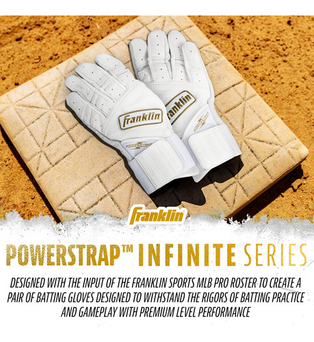 Se você está procurando luvas de rebatidas de beisebol e softball projetadas para a combinação ideal de desempenho, durabilidade e suporte, não procure mais, as luvas de rebatidas Powerstrap Infinite Series da Franklin Sports. Feito em conjunto com nossos jogadores profissionais da MLB, o couro Cabretta Pro Trainer da Pittard, mais espesso, mantém uma suavidade superior sem comprometer a sensação de bastão Franklin que todos conhecemos e amamos. Projetadas para oferecer durabilidade premium, as luvas de rebatidas Powerstrap Infinite são feitas para durar, balanço após golpe, e são perfeitas para uso nas gaiolas para treinar rebatidas ou no campo para jogos. Construído com orifícios na palma da mão para maior fluxo de ar para manter as mãos frescas e secas, e um design de palma perfeito e sem manchas que proporciona uma sensação responsiva no bastão, sem enrolamentos ou costuras no caminho. Finalizado com nossa exclusiva pulseira extra alta de 60 mm e aba de fechamento Powerstrap para reforçar a estabilidade do pulso e fornecer o melhor suporte do jogo. Portanto, se você deseja praticar seu swing nas gaiolas de rebatidas ou busca maior aderência e estabilidade no prato, compre hoje mesmo um par das novas luvas de rebatidas Powerstrap Infinite da Franklin Sports.