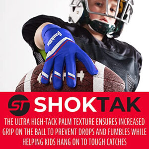 Specifically designed with the Youth player in mind, Franklin Sports shoktak receiver gloves are perfect for beginners! This lightweight and durable football glove pair reduces the sting of every catch and is ideal for every position. Designed with the pre-curved anatomy of the human hand in mind, All Franklin gloves are uniquely engineered with TRI-CURVE technology to reduce bunching and improve fit, feel, and performance.