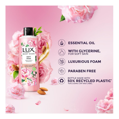 Lux French Rose Fragrance & Almond Oil Bodyash • Tamanho: 8 fl oz (pacote de 1) • Lux French Rose Fragrance & Almond Oil Bodyash – 245 ml Color: Marca: Lux Dimensiones: 0.039 x 0.184 x 0.058 mts Peso del Producto: 0.27 Kilogramos. Peso de Envio: 0.27 Kilogramos. Modelo: LTJX100