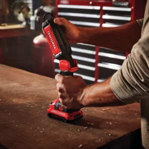 Luz de trabalho LED CRAFTSMAN V20, portátil sem fio, 350/700 lúmens, somente para ferramentas simples (CMCL050B) – TEMPO DE OPERAÇÃO PROLONGADO: 350/700 lúmens LED para máxima emissão de luz – MÁXIMA CONVENIÊNCIA: o gancho telescópico de 360 graus da luz de trabalho recarregável é feito para pendurar a unidade em várias orientações – VERSATILIDADE: cabeça giratória de 0 a 140 graus – VISIBILIDADE APRIMORADA: 3 luzes LED ajudam no escuro áreas de trabalho