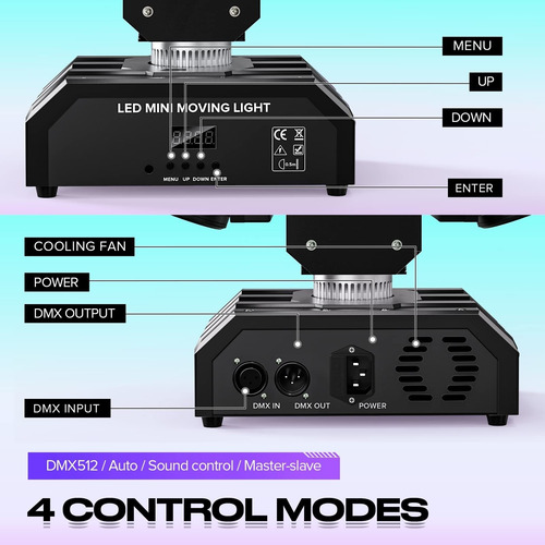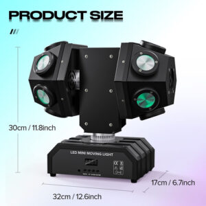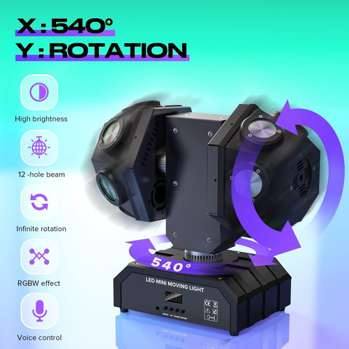Sistema de cores RGBW com rotação escalonada, efeito arco-íris e 20 flashes por segundo para um feixe claro e luz brilhante. O projetor RGB leve é fácil de levar para qualquer lugar.
