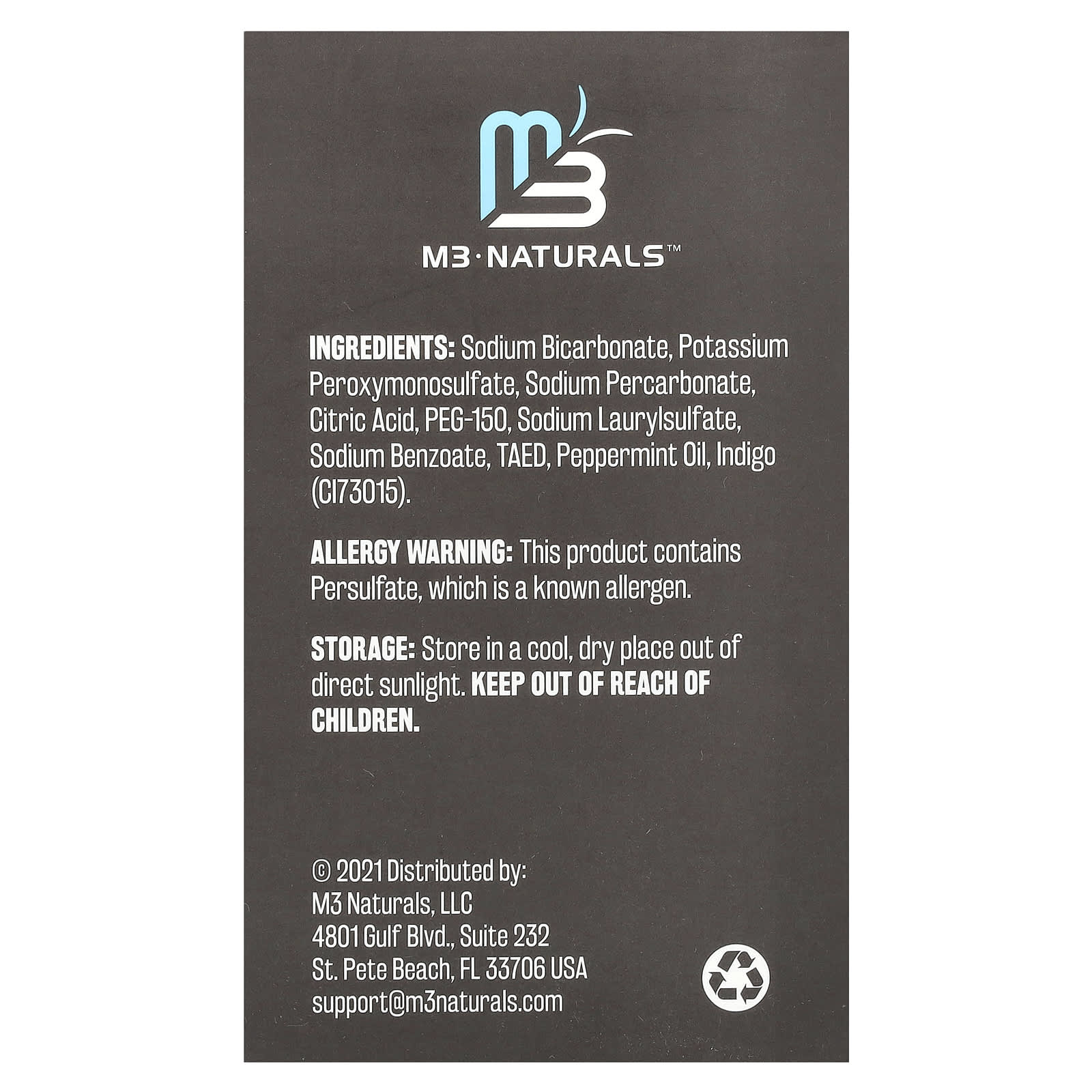 Bicarbonato de sódio, peroximonossulfato de potássio, percarbonato de sódio, ácido cítrico, peg-150, laurilsulfato de sódio, benzoato de sódio, TAED, óleo de hortelã-pimenta, índigo (CI73015).
