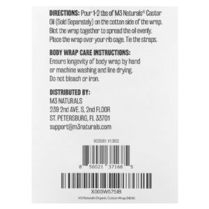 Despeje 1 a 2 colheres de sopa de Óleo de Rícino M3 (Vendido Separado) no lado do algodão da compressa. Seque as compressas para espalhar o óleo de maneira uniforme. Coloque a compressa sobre a caixa óssea. Amarre as tiras.
