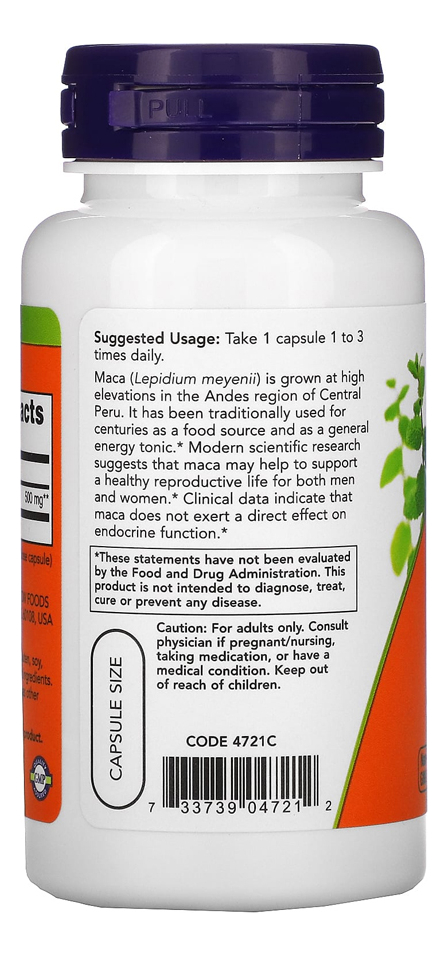 Maca Peruana 500mg Now Foods 100 Caps + Porta Cápsulas