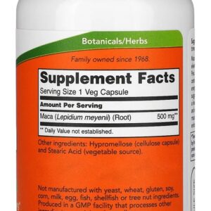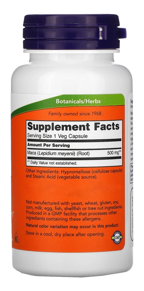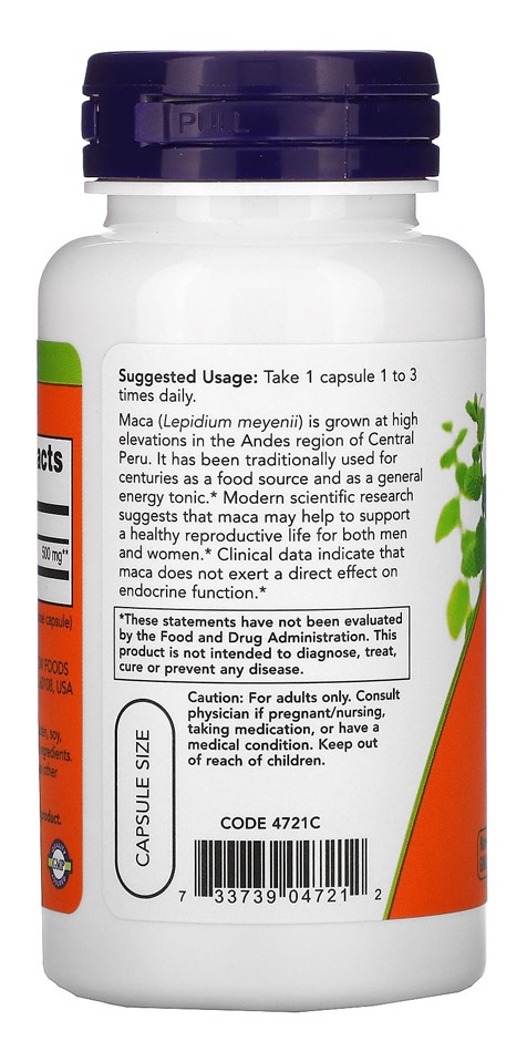 Now Foods Raw Maca Peruana 500mg 100 Cápsulas Vegetarianas para Homem e Mulher / No Brasil Disponível em uma fórmula de 500mg, bem como em cápsulas vegetarianas que podem ser facilmente ingeridas, a Maca Peruana da Now Foods apresenta uma forma mais concentrada e crua desta substância que pode ajudar a promover maior libido e desempenho sexual, vigor físico ou mesmo complementar sua dieta alimentar com as quantidades necessárias dessa substância importante que também funciona como tônico energético geral. Fabricado sem trigo, glúten, soja, milho, leite, ovo, peixe, marisco ou nozes. Outros ingredientes: Outros Ingredientes: Hipromelose (cápsula de celulose) e Ácido Esteárico (fonte vegetal). Recomendações de uso: Tomar 1 cápsula 1 a 3 vezes ao dia. Cuidados: Apenas para adultos. Pode ocorrer variação de cor natural neste produto. Mantenha fora do alcance de crianças. Armazenamento: Armazenar em local seco e fresco após a abertura. Podem ocorrer variações naturais de cor neste produto. Dimensões: 4,9 x 4,9 x 10,8 cm Peso: 0,090 1x Frasco com 100 Veg Caps Vide Validade
