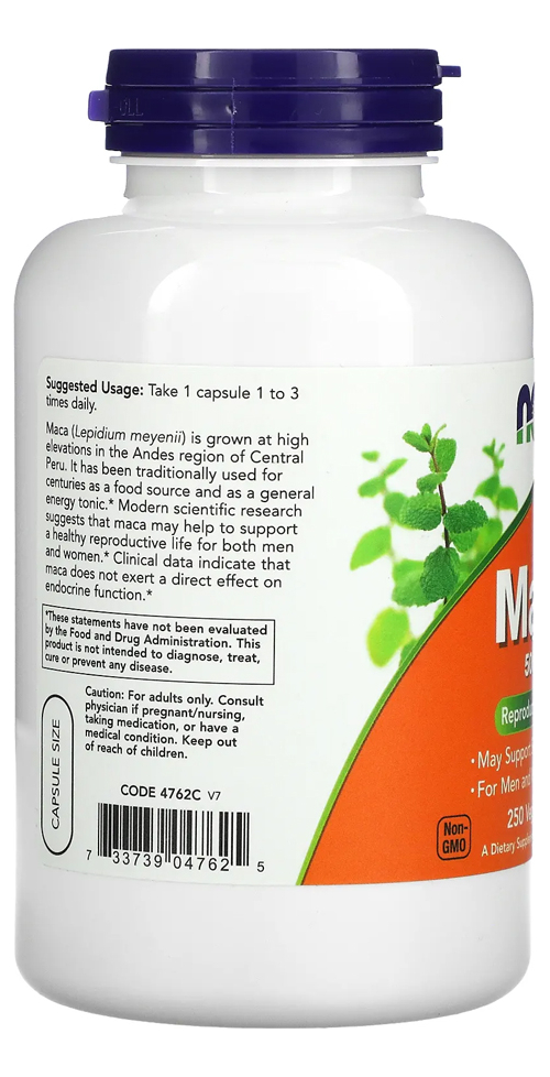 Maca Peruana 500mg Now Foods 250 veg caps Pode apoiar o bem-estar sexual para Homens e Mulheres É tradicionalmente usada há séculos como fonte de alimento e tônico energético geral. Pode ajudar a manter uma vida reprodutiva. Outros ingredientes: Hipromelose (cápsula de celulose) e ácido esteárico (fonte vegetal). Não contém fermento, trigo, glúten, soja, milho, leite, ovo, peixe, marisco ou ingredientes de nozes. Produzido em uma instalação de GMP que processa outros ingredientes contendo esses alérgenos. Apenas para adultos. Consulte um profissional se estiver grávida / amamentando, tomando medicamentos ou se tiver um problema de saúde. .