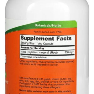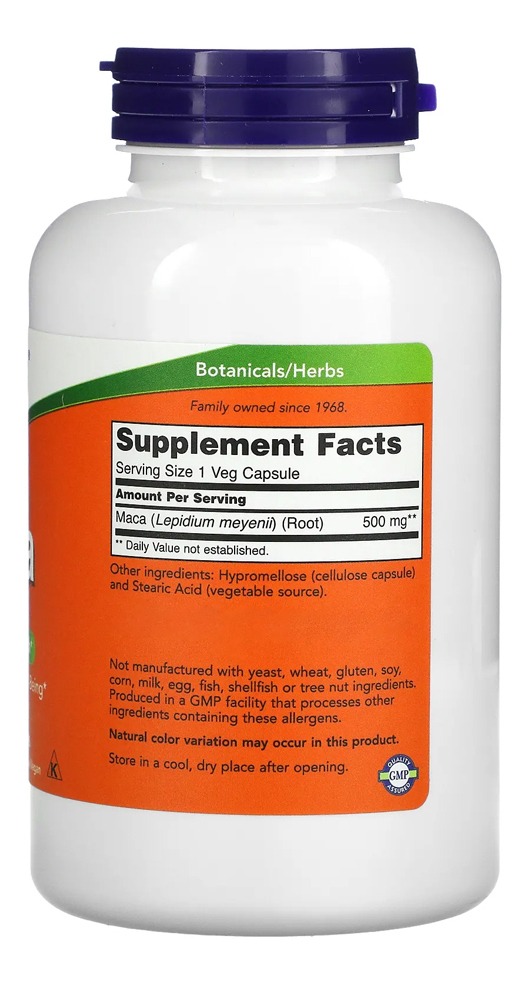 Maca Peruana 500mg Now Foods 250 veg caps Pode apoiar o bem-estar sexual para Homens e Mulheres É tradicionalmente usada há séculos como fonte de alimento e tônico energético geral. Pode ajudar a manter uma vida reprodutiva. Outros ingredientes: Hipromelose (cápsula de celulose) e ácido esteárico (fonte vegetal). Não contém fermento, trigo, glúten, soja, milho, leite, ovo, peixe, marisco ou ingredientes de nozes. Produzido em uma instalação de GMP que processa outros ingredientes contendo esses alérgenos. Apenas para adultos. Consulte um profissional se estiver grávida / amamentando, tomando medicamentos ou se tiver um problema de saúde. .