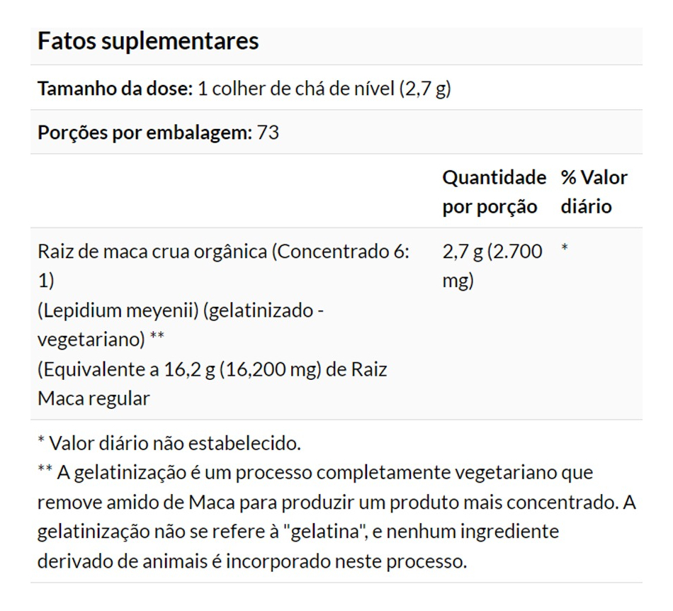 2. Versatilidade na Culinária: A Maca Peruana em pó pode ser usada em uma variedade de pratos. Seja adicionando um toque nutritivo a batidas, panquecas, barras de cereal ou incorporando em molhos e sobremesas, este superalimento se adapta facilmente às suas necessidades culinárias, trazendo um sabor único e terroso aos pratos.