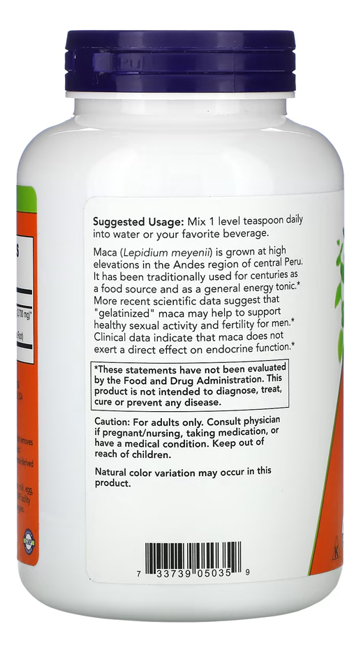 Kit Maca Peruana em Pó Now Foods 198g Orgânica + Porta Cápsulas Energia e Vitalidade Natural: A Maca Peruana da Now Foods é reconhecida por seu potencial em promover energia e vitalidade natural. Este superalimento, usado tradicionalmente nos Andes Peruanos, é uma fonte rica de nutrientes, ideal para impulsionar seu dia. Formato em Pó Versátil: Apresentada em forma de pó, a Maca Peruana é extremamente versátil e fácil de usar. Pode ser adicionada a smoothies, sucos, iogurtes ou receitas, oferecendo uma maneira prática e saborosa de incluir este superalimento na sua alimentação diária. Qualidade Orgânica e Importada: Esta Maca Peruana é 100% orgânica, cultivada sem o uso de pesticidas ou fertilizantes químicos. Importada para garantir a mais alta qualidade, ela está disponível a pronta entrega, permitindo que você comece a desfrutar de seus Destaques imediatamente. Porta Cápsulas com Duas Repartições: O kit também inclui um porta-cápsulas prático, dividido em duas seções internas. Isso permite uma organização eficaz e separada de diferentes tipos de cápsulas ou pílulas. Destaques da Composição Nutricional: A Maca Peruana é rica em vitaminas, minerais, proteínas e fibras. Sua composição nutricional a torna um excelente complemento para uma dieta balanceada, ajudando a complementar suas necessidades diárias de nutrientes essenciais. VALIDADE LONGA