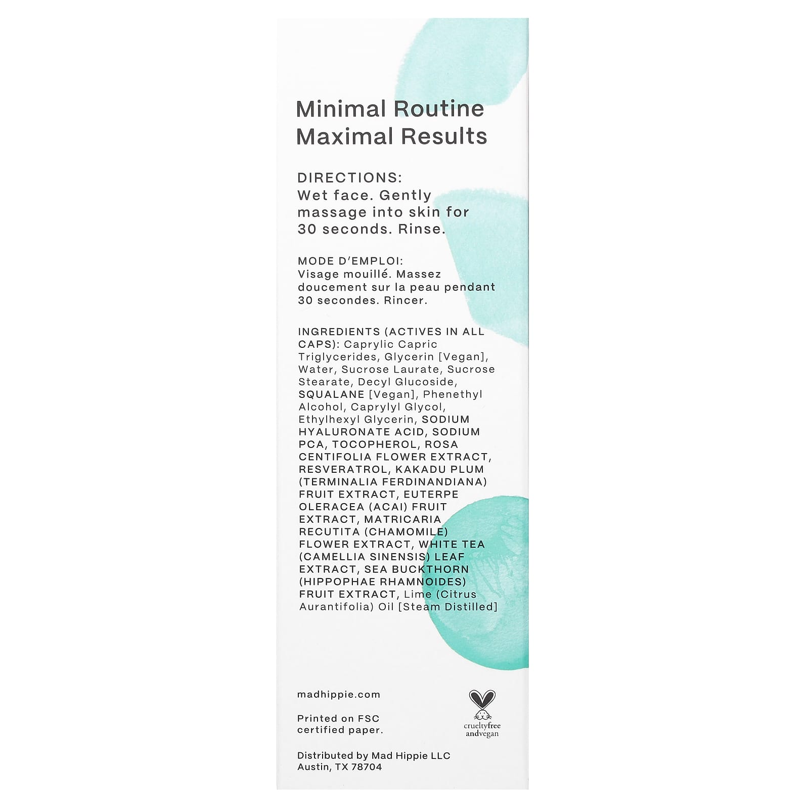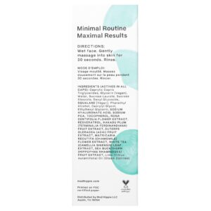Molhe o rosto. Massageie suavemente na pele por 30 segundos. Enxágue.