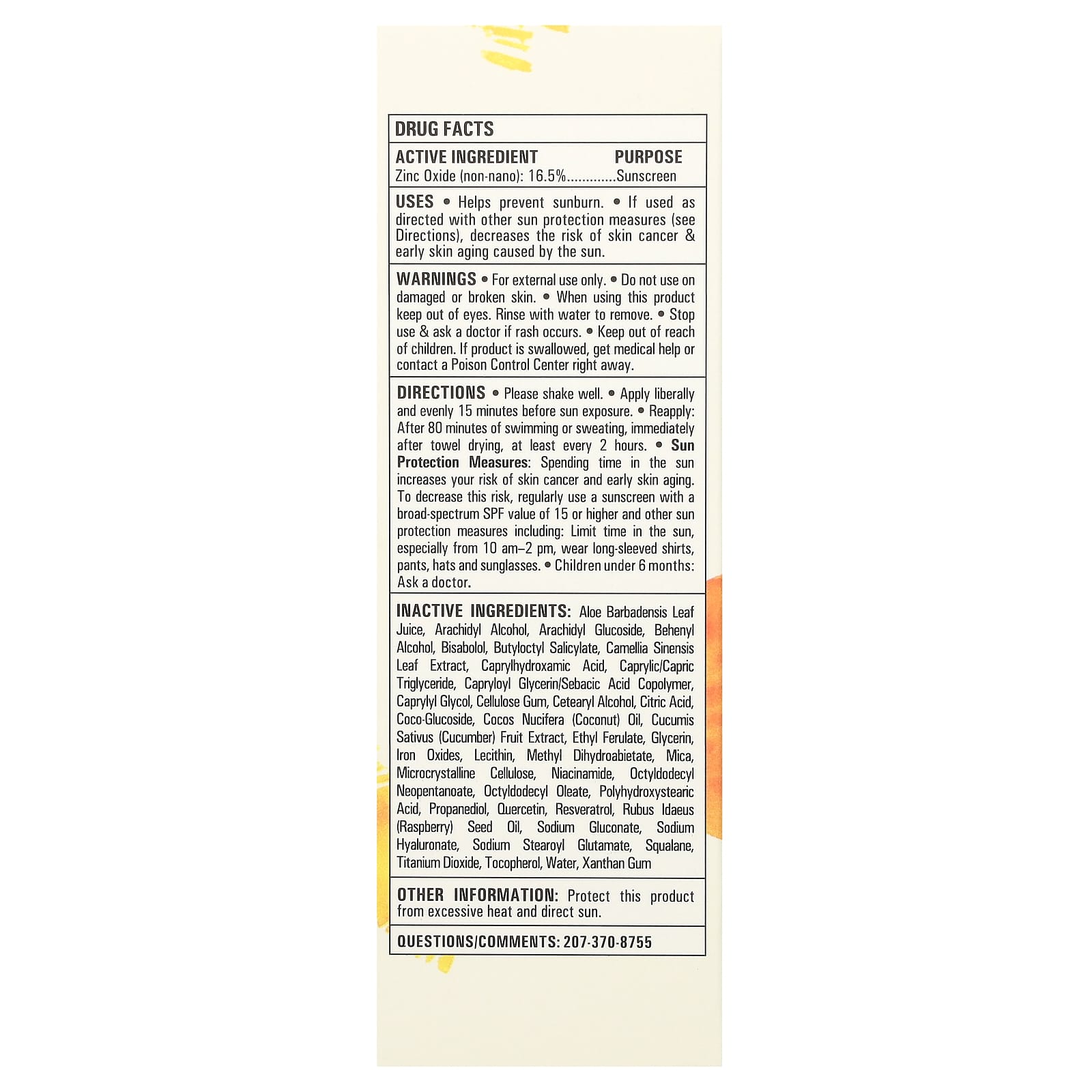 Ingredientes Inativos: Suco da folha de Aloe barbadensis, arachidyl alcohol, arachidyl glucoside, behenyl alcohol, bisabolol, butyloctyl salicylate, extrato da folha de Camellia sinensis, caprylhydroxamic, caprylic/capric triglyceride, capryloyl glycerin/sebacic acid copolymer, caprylyl glycol, goma de celulose, álcool cetoestearílico, ácido cítrico , coco-glucoside, óleo de Cocos nucifera (coco), extrato da fruta de Cucumis sativus (pepino), ethyl ferulate, glicerina, óxidos de ferro, lecitina, methyl dihydroabietate, mica, celulose microcristalina, nicotinamida, octildodecyl neopentanoate, octildodecyl oleate, polyhydroxystearic acid, propanediol , quercetina, resveratrol, óleo da semente de Rubus idaeus (framboesa), gluconato de sódio, hialuronato de sódio, sodium stearoyl glutamate, esqualano, dióxido de titânio, tocoferol, água, goma xantana