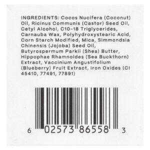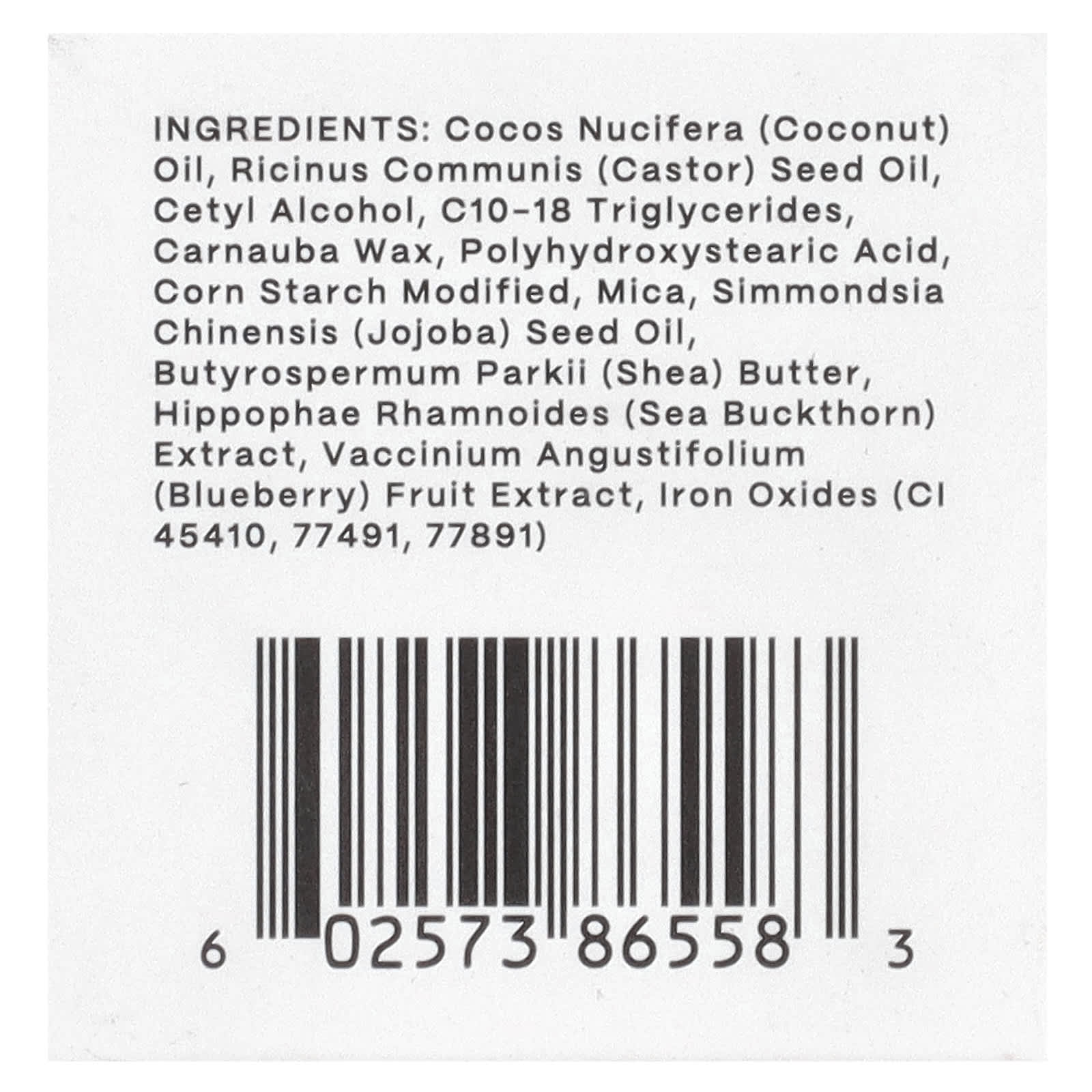 Óleo de Cocos nucifera (coco), óleo da semente de Ricinus communis (rícino), álcool cetílico, triglicerídeos c10-18, cera de carnaúba, ácido polihidroxiesteárico, amido de milho modificado, mica, óleo da semente de Simmondsia chinensis (jojoba), manteiga de Butyrospermum parkii (karité), extrato de Hippophae rhamnoides (espinheiro marítimo), extrato da fruta de Vaccinium angustifolium (mirtilo), óxidos de ferro (CI 4510,77491,77891).