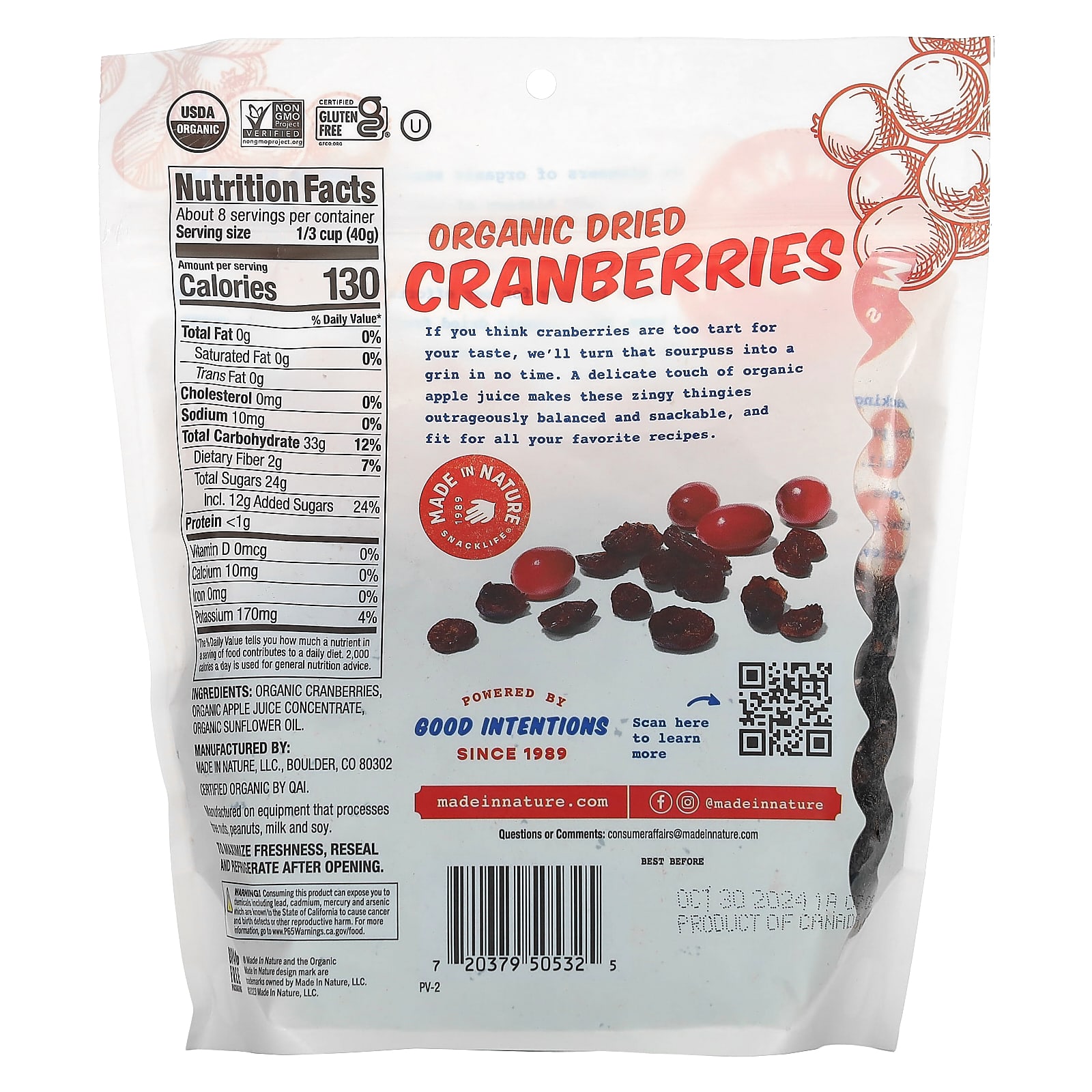 Made in Nature Cranberries Orgânicos Desidratados com Suco de Maçã Orgânica 340 g (12 oz) – Made in Nature Alimentos Petiscos e lanches Frutas e Legumes Secos Arandos.