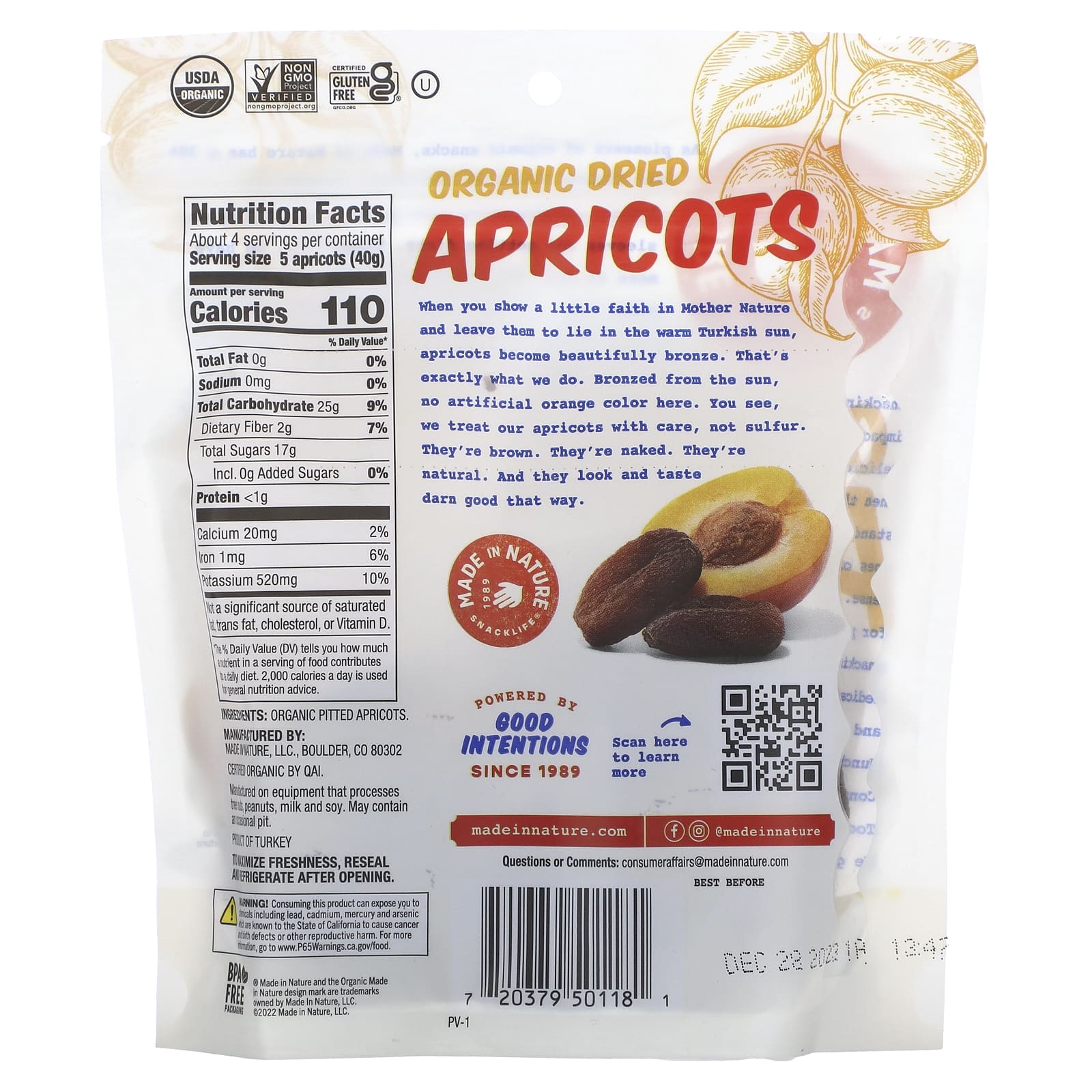 Made in Nature Damascos Secos Orgânicos In The Buff Supersnacks 170 g (6 oz) – Made in Nature Alimentos Petiscos e lanches Frutas e Legumes Secos Damascos Snacks de frutas e vegetais.