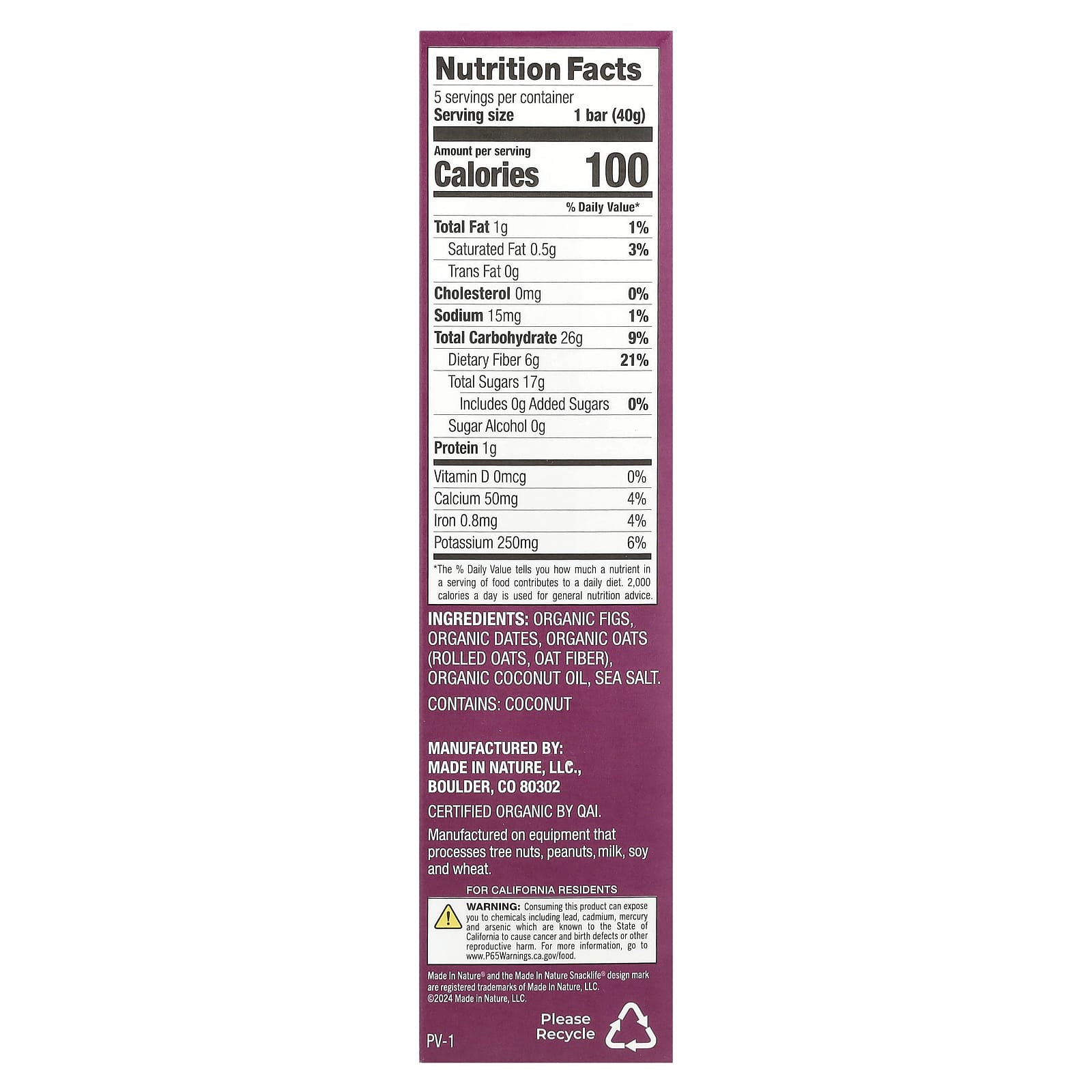 Made in Nature Fig N Oats® Figo Original 5 Barras Embaladas Individualmente 40 g (14 oz) Cada