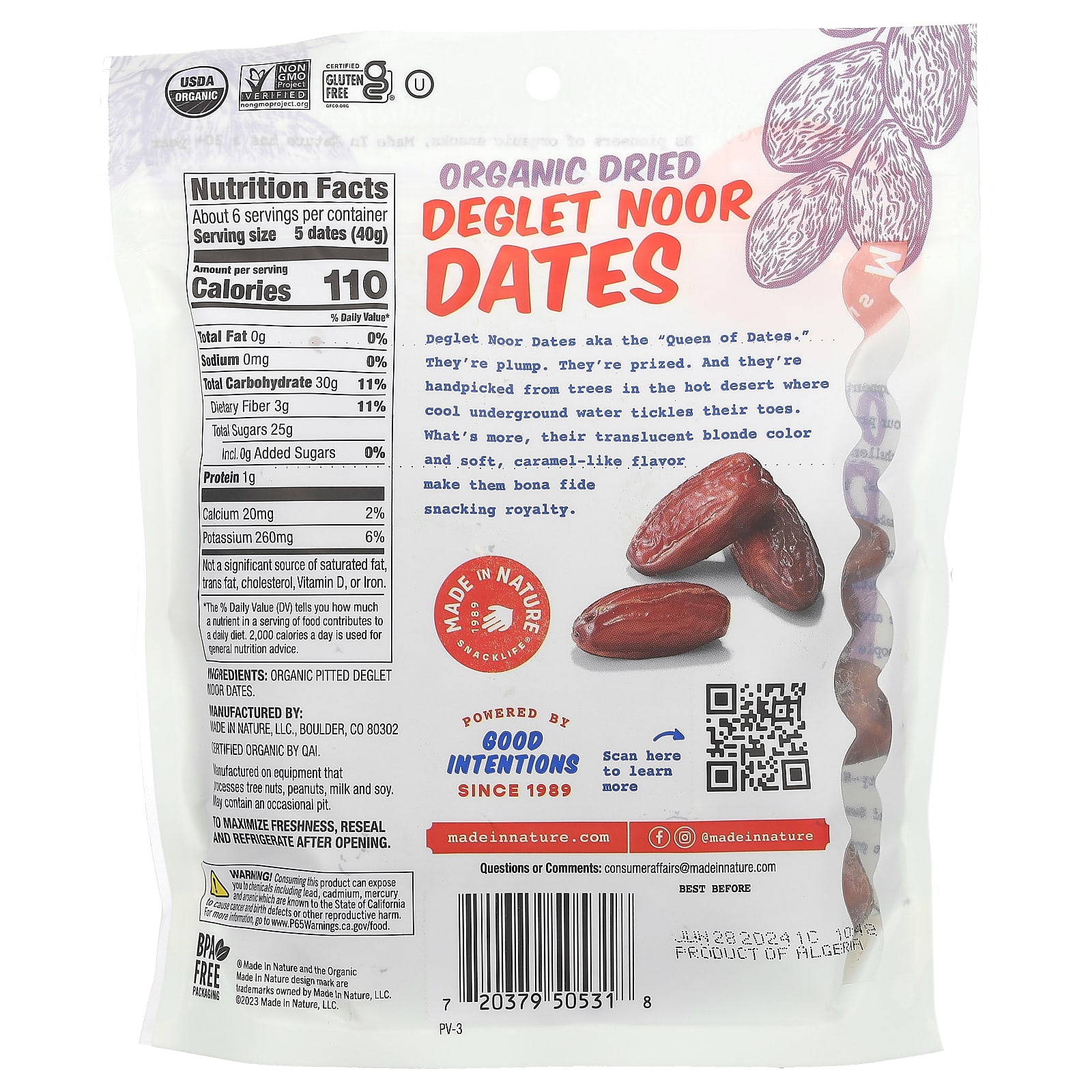 Made in Nature Tâmaras Deglet Noor Orgânicas Secas Sem Caroço Secas ao Sol 227 g (8 oz) – Made in Nature Alimentos Petiscos e lanches Frutas e Legumes Secos Tâmaras Snacks de frutas e vegetais.