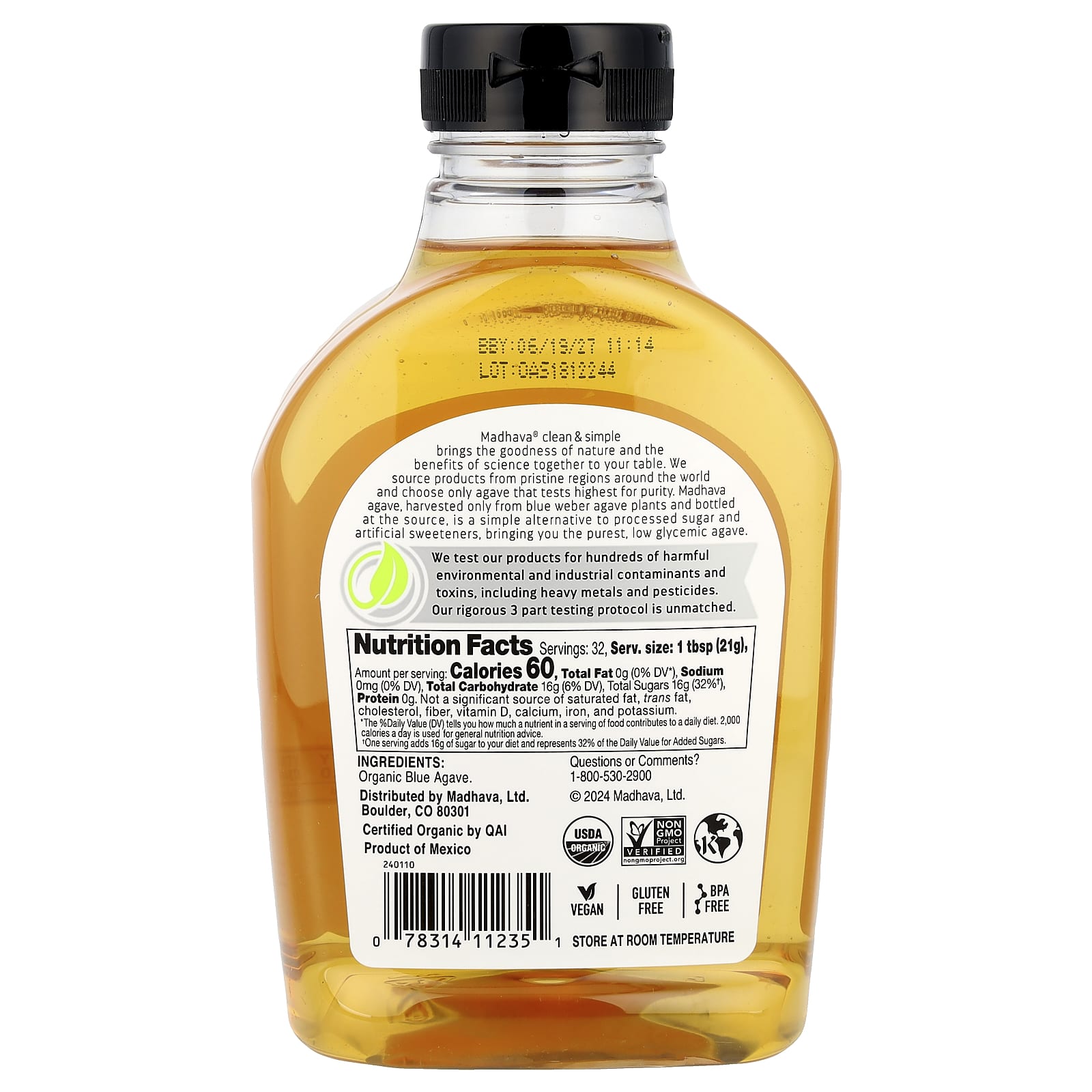 Madhava Orgânico Luz Dourada Agave Azul Adoçante de Baixo Teor Glicêmico 23.5 oz (667 g) – Madhava Alimentos Mel e adoçantes Néctar de agave.