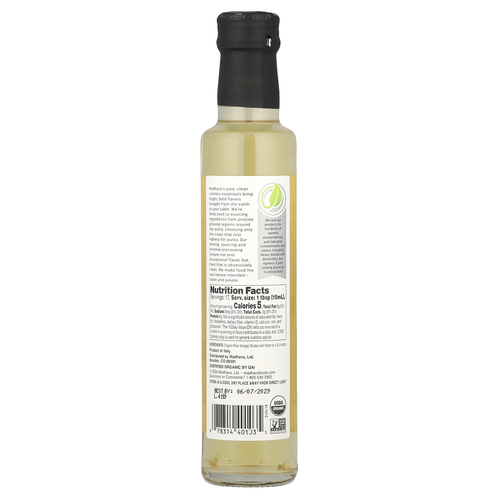 Madhava Vinagre de Arroz Orgânico 250 ml (845 fl oz) – Madhava Alimentos Óleos e vinagres Vinagre.