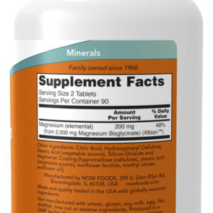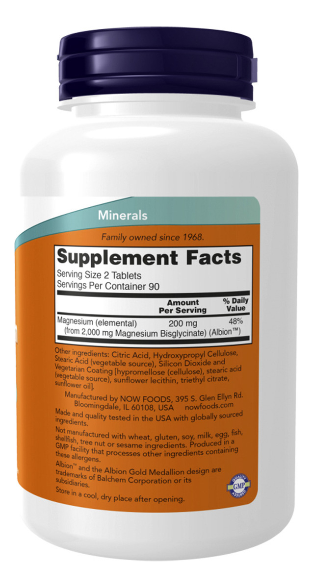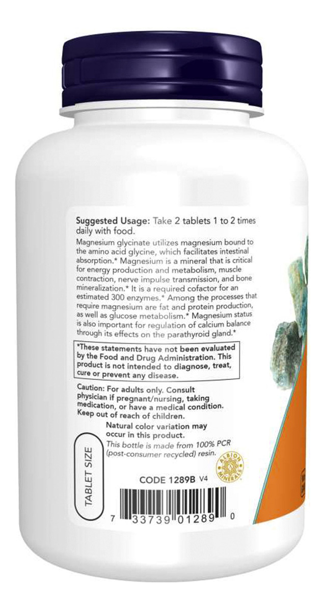 Magnésio Glicinato Now Foods 180 Tabletes Importado Sabor Sem Sabor