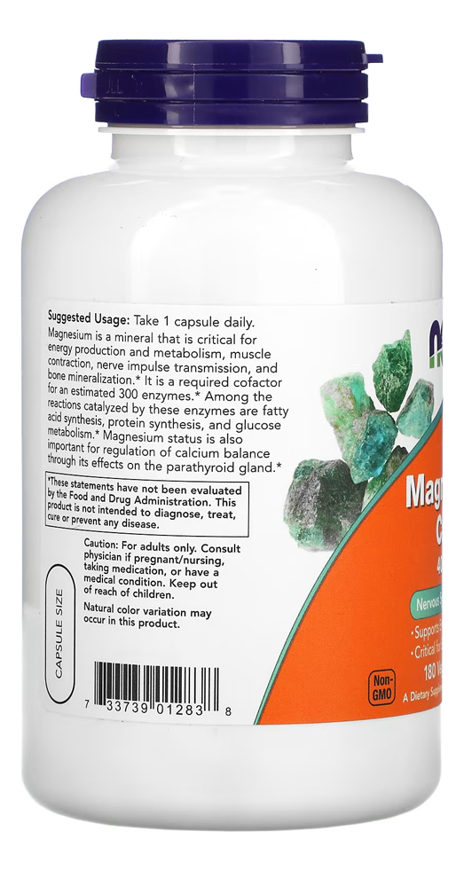 Magnésio Magnesium 400mg Now Foods 180 Veg Caps – Importado