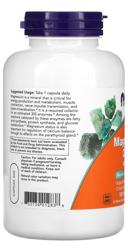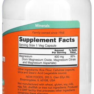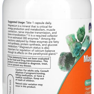 O Magnésio é um mineral importante para várias funções corporais. Com as cápsulas de magnésio de 400mg Now Foods, você tem uma forma conveniente e fácil de garantir a ingestão diária desse mineral essencial;